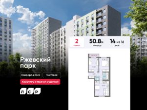 Продается 2-комнатная квартира в ЖК "ЛСР. Ржевский парк" на 14 этаже. Общая площадь составляет 50.80 кв. м. Квартира с чистовой отделкой. Жилой комплекс "ЛСР. Ржевский парк" располагается по адресу Ленинградская область, Всеволожский район, Ковалёво пос..