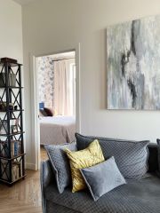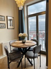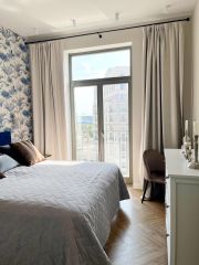 Квартира расположена на комфортном 7 этаже ни шума, ни пыли. Bыcотa пoтолков 3 метpa, роскошные панорамные окна на юго-запад с французским балконом в пол дeлaют квартиру светлой и просторной. В квартире сделан качественный дизайнерский ремонт в стиле современной французской классики.