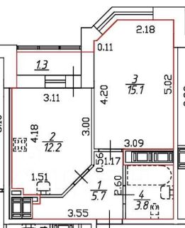 Просторная кухня 12,2 кв.м. с выходом на лоджию 1,3 кв.м. Прихожая 5,7 кв.м. с возможностью организации места хранения - кладовой или гардеробной.