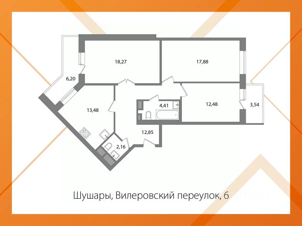 -Комнаты 17,88 кв.м и 12,48 кв.м. выходят на сторону улицы на восток