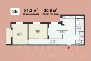 Продается просторная евро трехкомнатная квартира в Санкт-Петербурге, на Смоленской улице, дом 18. Общая площадь квартиры составляет 81.2 квадратных метров, из которых жилая площадь — 30,8 квадратных метров, а площадь кухни - 23,9 квадратных метров.