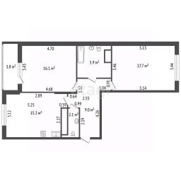 - просторная комната 17,7 м2 с возможностью зонирования,