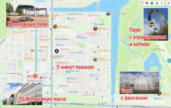 Рядом благоустроенная парковая зона с прудами и детскими площадками.