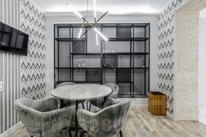 - Дом спокойный, малоквартирный. Для автовладельцев оборудован наземный закрытый паркинг внутри двора. Охраняемая территория. Для дополнительной безопасности жильцов ведётся круглосуточное видеонаблюдение.