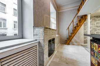 Площадь комнаты-Студии 12 квадратов, потолки 3,17м2. Сделан косметический ремонт. Спальное место спроектировано на втором этаже, что комнату-Студию делает больше по размещению.
