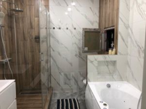 При получении квартиры с черновой отделкой был сделан ремонт с использованием современных дорогостоящих материалов, выровнены все поверхности, произведена замена эл. Проводки, установлена дорогостоящая сантехника, качественные двери, кафель, паркетная доска, кондиционеры.