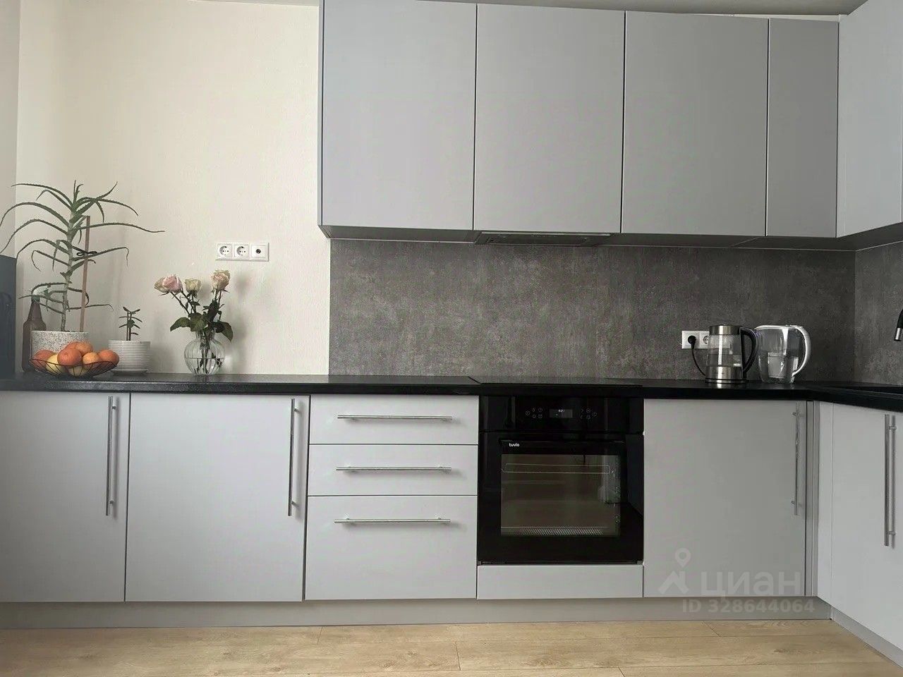 — встроенная техника: индукционная варочная панель, духовой шкаф, посудомоечная машина, бутылочница;