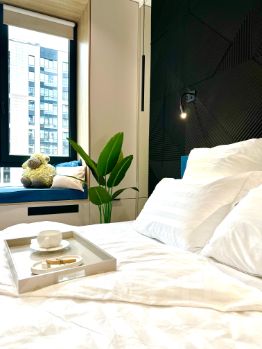 -стильный дизайн и грамотное зонирование: есть даже зона релакса на окне в спальне, и оборудована зона лаунджа на балконе. -Идеально продуманные и выполненные на заказ места хранения, и ваши вещи не будут наконец валяться по всей квартире!