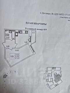 Продаётся светлая однокомнатная квартира 36 м² в ЖК Муринский посад
