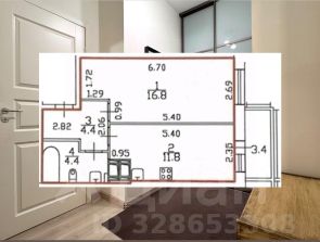 -Кухня 11,8 кв.м +комната 16,8 кв.м+простроный сан.узел 4,4 кв.м;