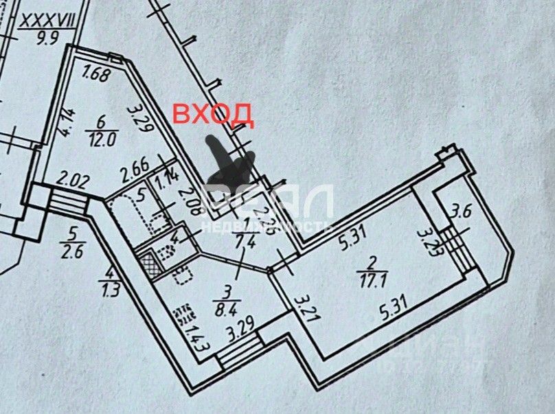 Площадь: 48,8 кв. м (комнаты 17,1 и 12 кв. м, кухня 8,4 кв. м)