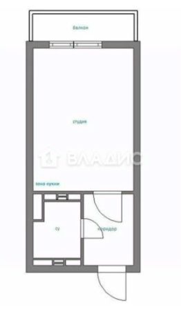 Общая площадь квартиры составляет 21,9 кв. м. Есть балкон.