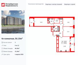 Уникальная, функциональная европланировка, большая кухня-гостиная 21.52 м², вместительная прихожая 10.32 м². Общая площадь квартиры - 86.18 м², жилая 41.44 м², высота потолка 2.77 м.