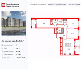 Уникальная, функциональная европланировка, большая кухня-гостиная 21.52 м², вместительная прихожая 10.32 м². Общая площадь квартиры - 86.18 м², жилая 41.44 м², высота потолка 2.77 м.