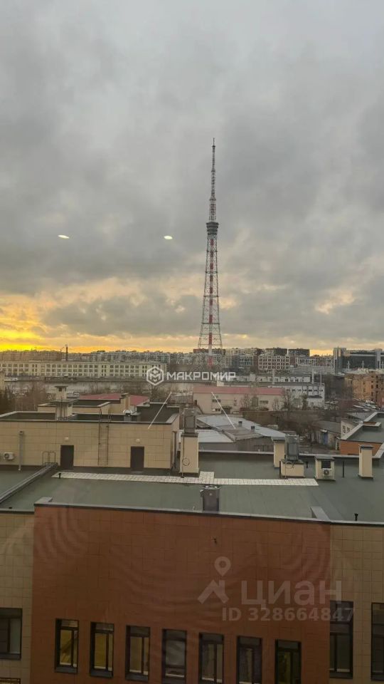 Завараживающий вид из окна на воду и на потресающую Санкт-петербургскую телебашню.