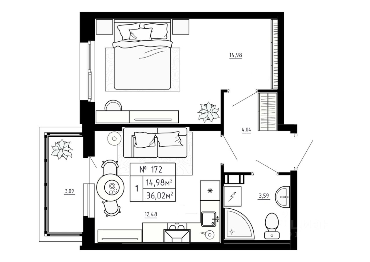 Общая площадь36,02 м²