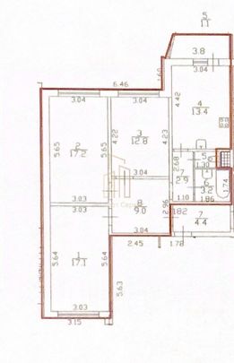 Комнаты — 17,2 / 17,1 / 12,8 м