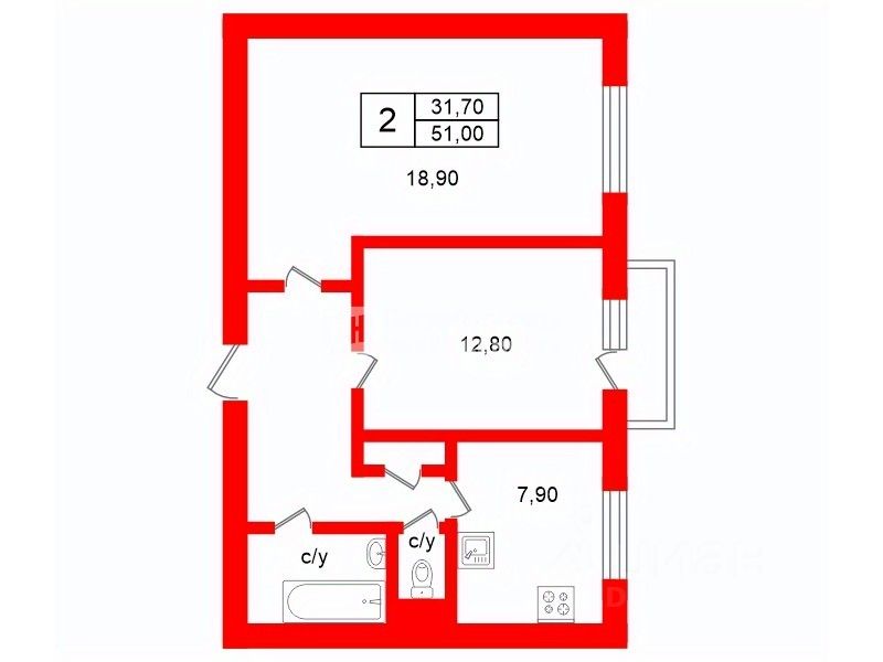 Квартира расположена на 6 этаже. Просторная прихожая, есть дополнительные места хранения, раздельные комнаты 18.9 и 12.8 м.кв. Из одной комнаты выход на балкон. Южная сторона. Кухня 7.9 м.кв. Санузел раздельный.