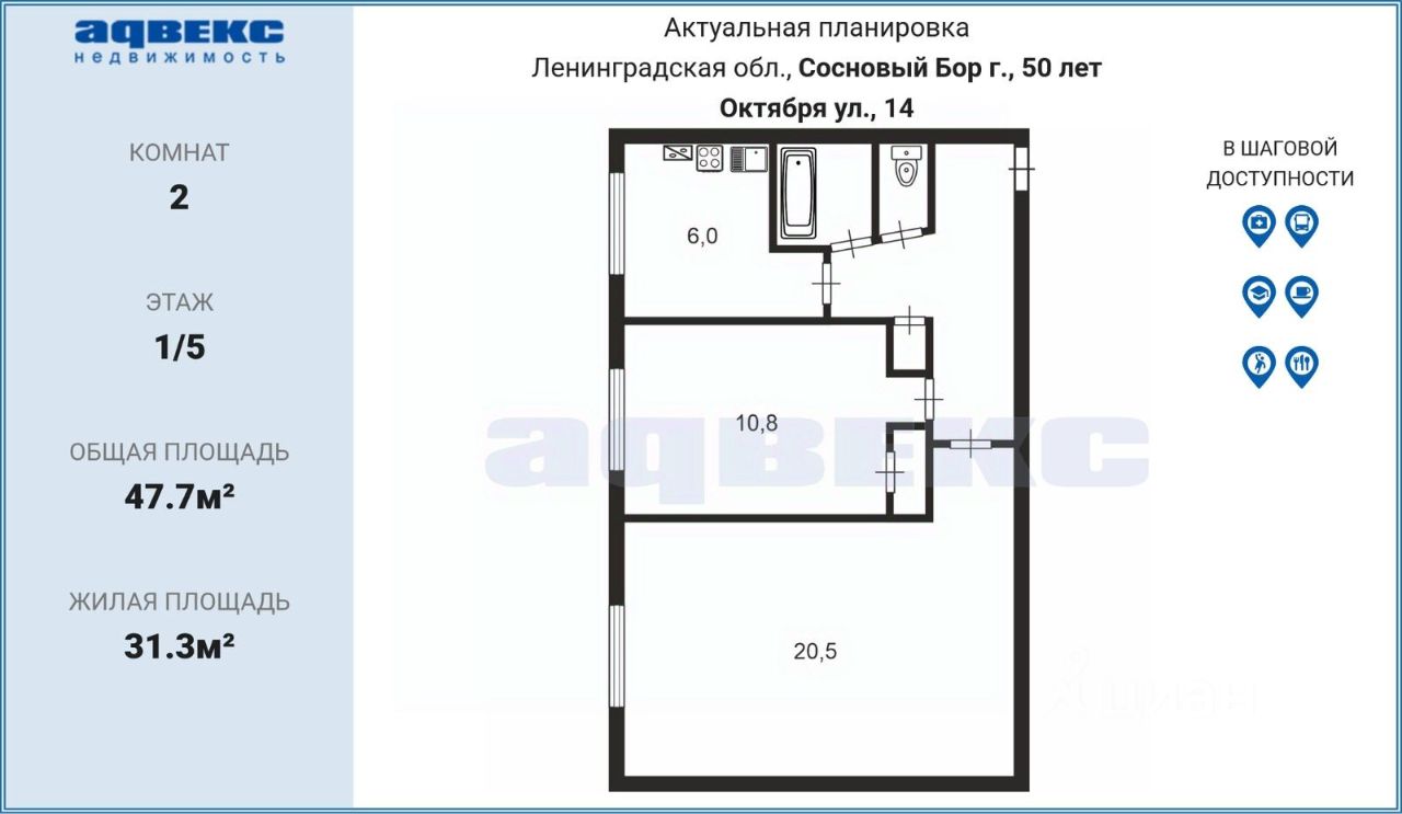 В ПРЯМОЙ продаже очень светлая и уютная 2-комнатная квартира в кирпичном доме по адресу: г. Сосновый Бор, ул. 50 лет октября, д. 14, 2-й микрорайон.