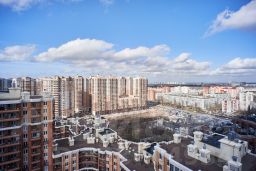 Окна выходят на улицу с видом на Лахту и панораму города, обеспечивая прекрасный вид и достаточное количество естественного света.