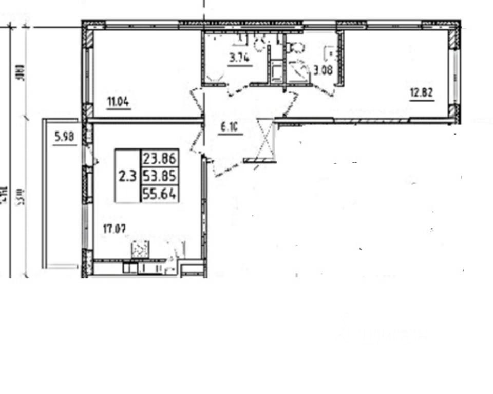 53,85 м²