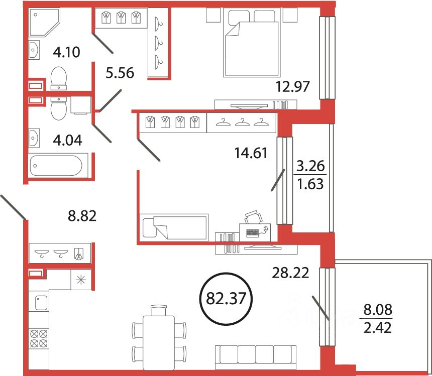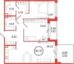 Продаётся e3 комнатная квартира (евро) в жилищном комплексе "Энфилд" (корпус Дом 21 Секция 1). Общая площадь 82,37 кв. м, площадь комнат 12,97 кв.м, 14,61 кв.м. 2 санузла. Квартира расположена на 2 этаже 12 этажного дома. Срок сдачи корпуса IV квартал 2027 года.