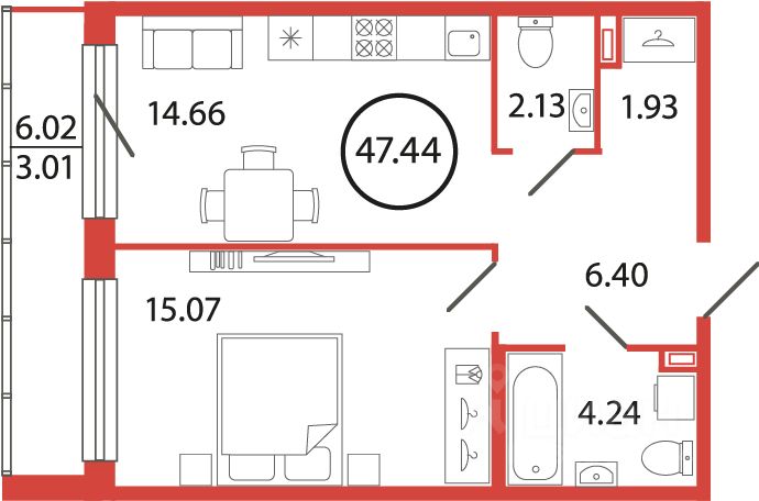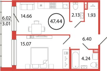Продаётся 1 комнатная квартира в жилищном комплексе "Энфилд" (корпус Дом 21 Секция 1). Общая площадь 47,44 кв. м, площадь комнат 15,07 кв.м. 2 санузла. Квартира расположена на 2 этаже 12 этажного дома. Срок сдачи корпуса IV квартал 2027 года.