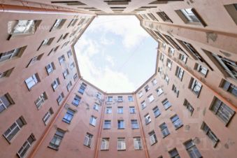 Окна выходят в знаменитый двор-восьмиугольник — атмосферное и по-настоящему петербургское пространство.