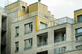 Современный дом с плоским фасадом из клинкерной плитки, правильные геометрические формы, ламели и золотистые террасы придают архитектурную легкость. Угловое витражное остекление и стильная 3-уровневая подсветка арт-объектов образуют выразительный экстерьер. Здание поднимается ступенями с 3 до 9 этажей, формируя приватную территорию с зонами для отдыха, спорта и работы на свежем воздухе.