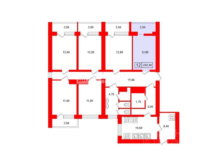 12,8 м²