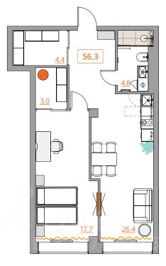 56,3 м² — самый востребованный формат для долгосрочной аренды.