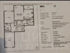 Общая площадь 75,15 кв. м включает две изолированные спальни (15 и 12 кв. м) правильной формы и объединённую кухню-гостиную 25 кв. м. Высота потолков — 2,65 м. В квартире два раздельных санузла: один с постирочной зоной и системой хранения, второй совмещён с ванной. Есть удобный широкий коридор около 12 кв. м с антресолями и шкафами, а также застеклённая лоджия. Выполнен современный ремонт.