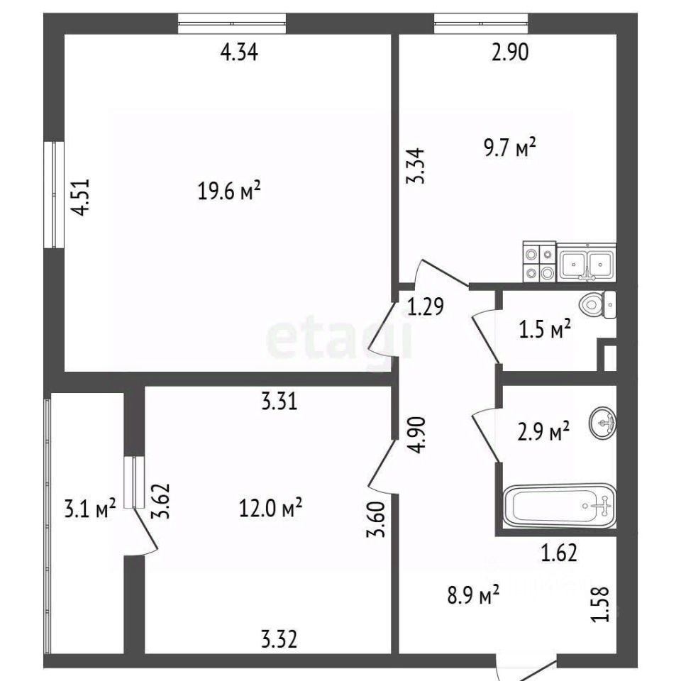 2комнатная квартира в ЖК "Граффити" с потолками высотой 3,3м!