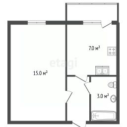 Квартира отличается правильной прямоугольной планировкой: изолированная светлая комната, просторная кухня с выходом на застекленную лоджию и раздельный санузел.