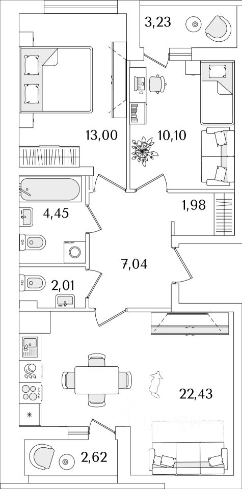 В доме представлен широкий выбор квартир от студий до трехкомнатных, в том числе уникальные лоты: квартиры с мастер-спальнями, квартиры-студии с двумя окнами и с возможностью зонирования, квартиры с окном в ванной, квартиры с террасами, квартиры с просторной кухней-гостиной 20-27 кв.м. Предлагаются варианты с чистовой, предчистовой (white box) отделкой и без отделки.