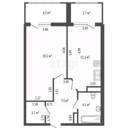 - Комната: 18,2 м²