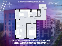 Солнечная квартира 70 м² в ЖК бизнес-лайт Европа Сити
