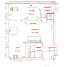 • гостиная — 18,8 м²