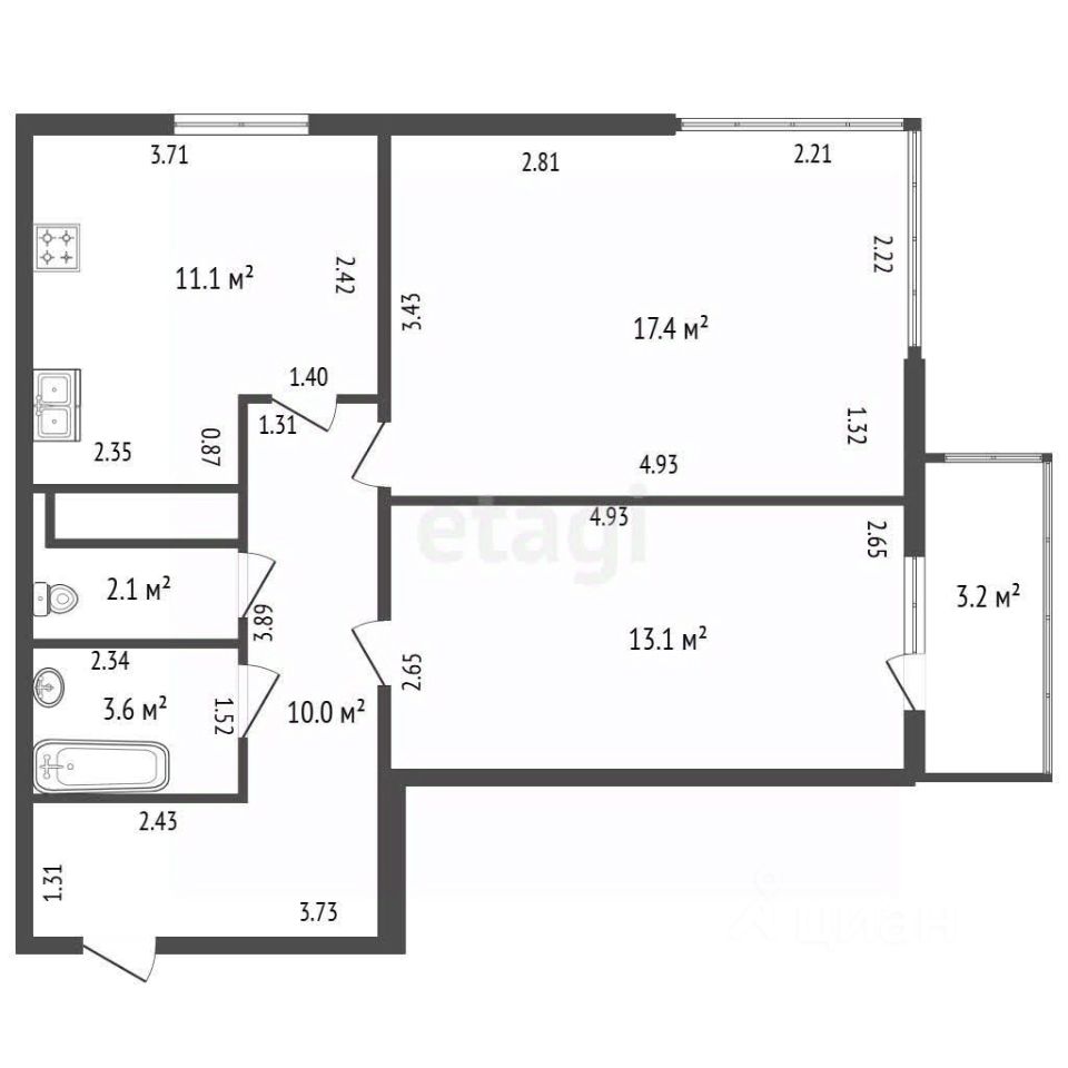 Площадь: 57,3 м2 — достаточно места для комфортной жизни и творчества!