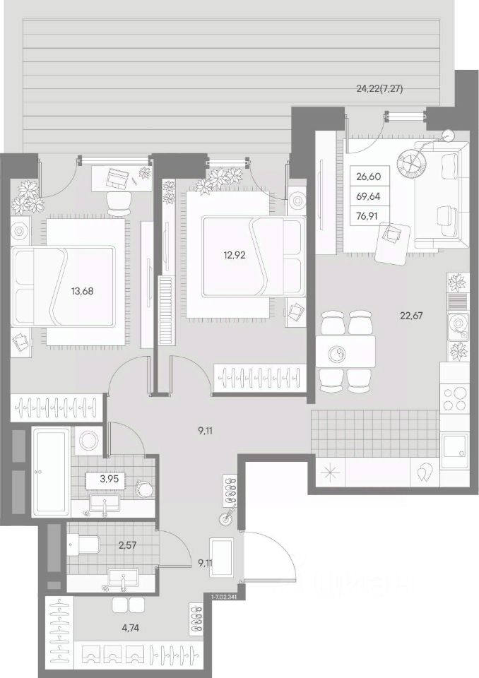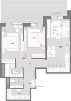 В историческом центре с особой атмосферой Петроградской стороны представлена 2-х комнатная квартира на 2 этаже общей площадью 76.91 кв.м.