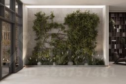 В корпусе расположена зеленая гостиная - полуприватная зона на 2-4 человека с деревянными креслами и диваном, а также детская площадка, интегрированная в сосны.