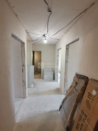 Произведён черновой ремонт - ровная стяжка и штукатурка, установлены стеклопакеты.