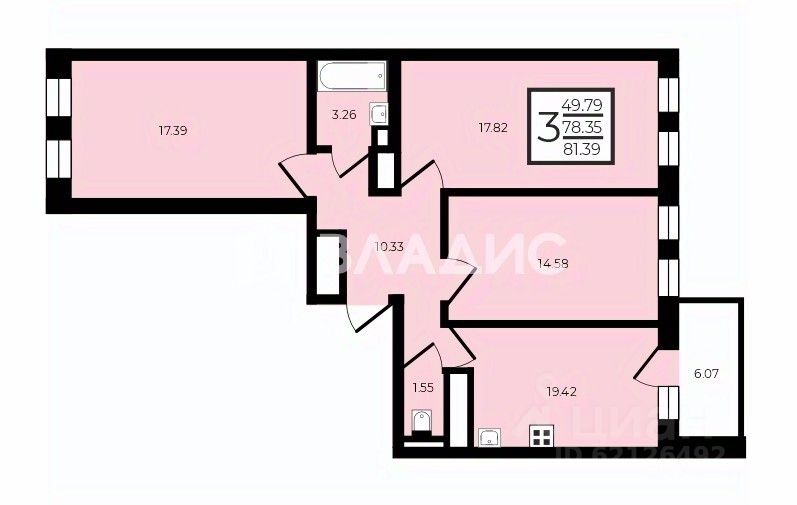 Общая площадь квартиры составляет 78,35 кв. м, из которых 49,79 кв. м — жилая площадь. Три изолированные комнаты с площадями 17,82 кв. м, 14,58 кв. м и 17,39 кв. м идеально подойдут для семьи. Кухня площадью 13,42 кв. м станет местом для приготовления вкусных блюд и семейных ужинов.