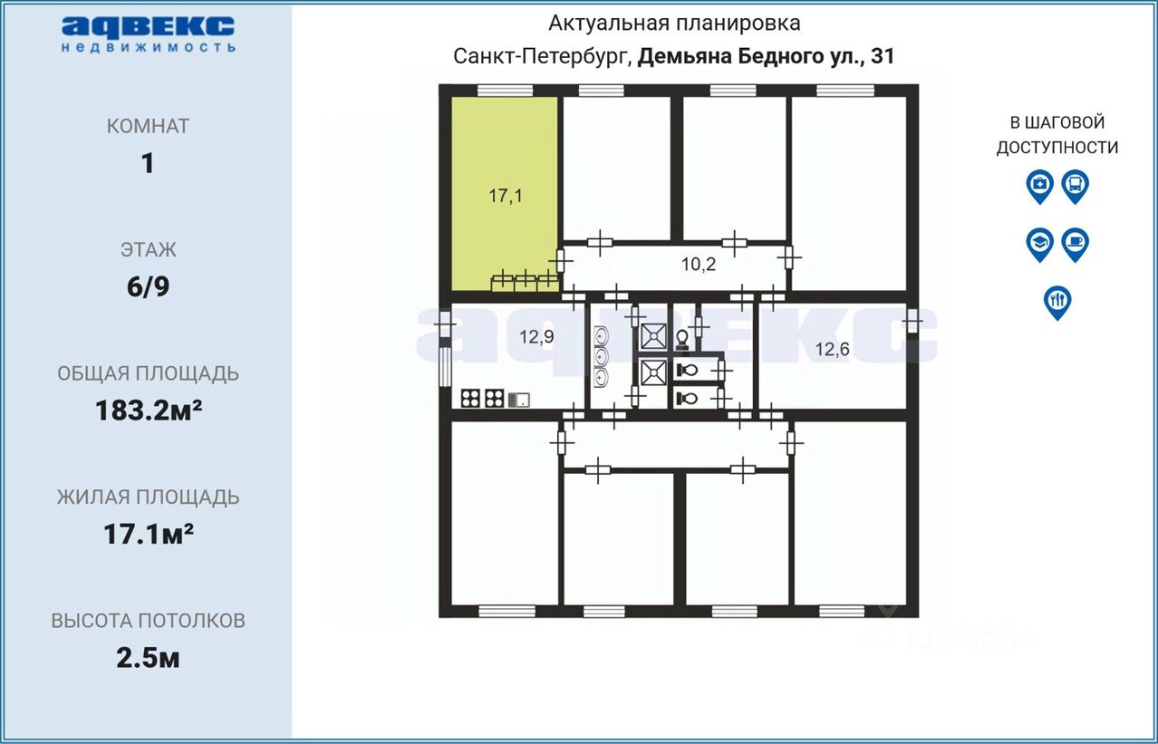 17,1 м²