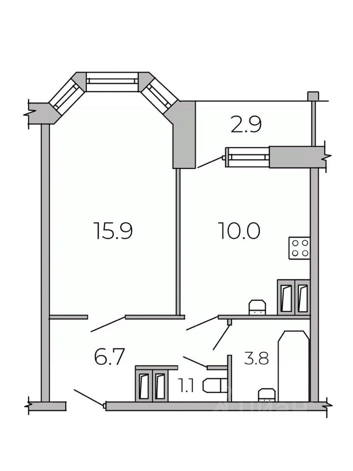Арт. 134242966 Всего в 10-ти минутах пешком от ст.м. Парнас, на ул. Валерия Гаврилина, д. 3, корп. 2, продается уютная 1-комнатная квартира с хорошим ремонтом (не от застройщика).
