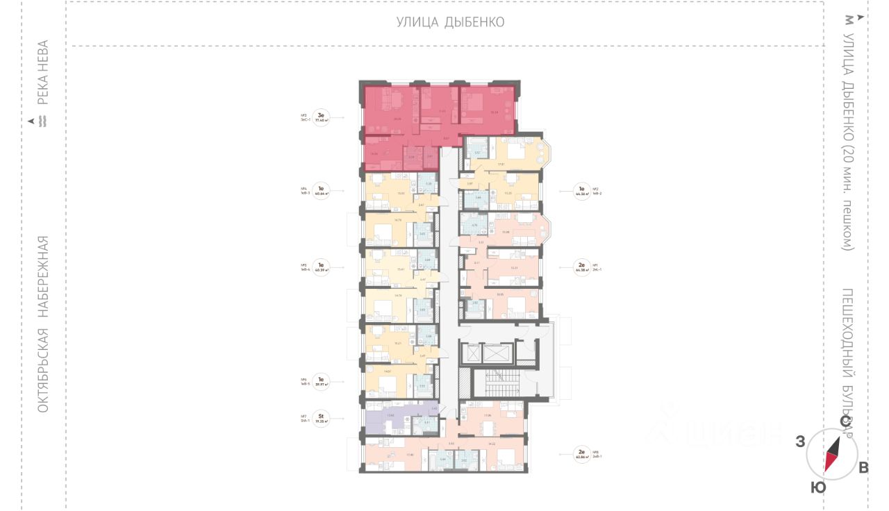 • 5 мин на авто до станции метро "Улица Дыбенко";