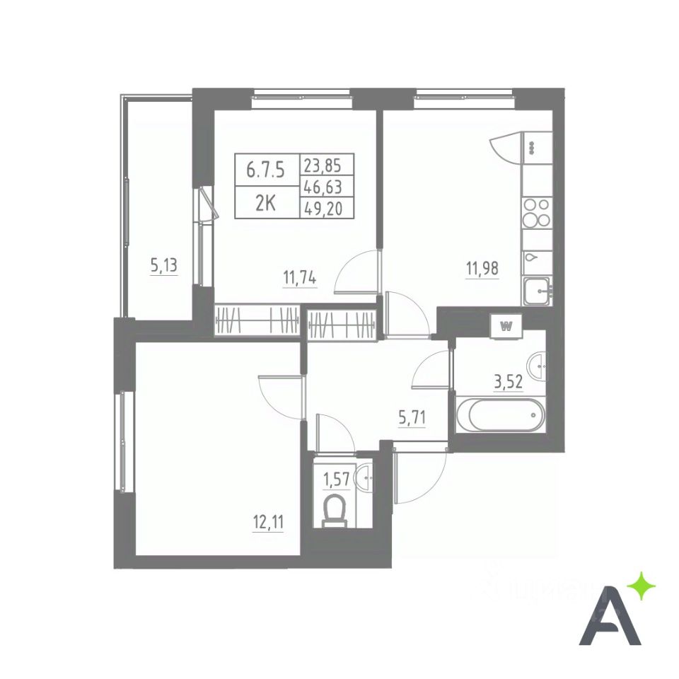 Общая площадь49,2 м²
