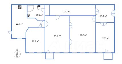 -большой совмещенный санузел с площадью 12,3 кв.м (в правой части квартиры есть ещё стояк водоснабжения и есть возможность сделать ещё один санузел)
