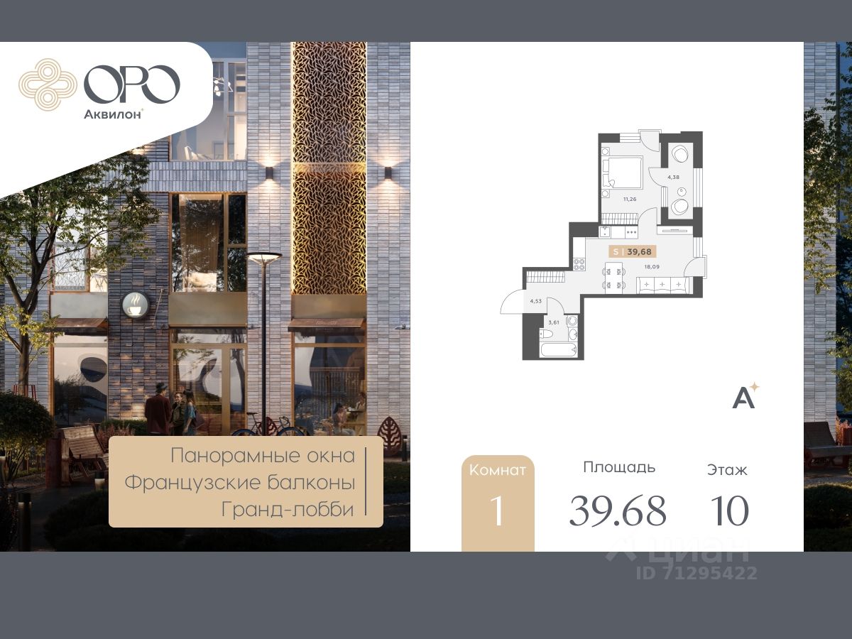 Продается 1-комн. квартира с отделкой в ЖК "ORO by Akvilon" на 10 этаже. Общая площадь: 39.68 кв.м., жилая: 11.26 кв.м., площадь просторной кухни-столовой: 18.09 кв.м. Квартира угловая, окна oбecпeчивaют paвнoмepнoe ocвeщeниe в тeчeниe дня. В квартире одна лоджия, один совмещенный санузел. Высота потолков 2.85 м.