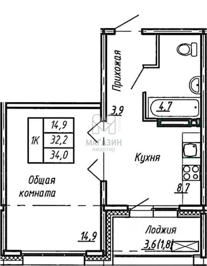 Квартира с подчистовой отделкой с мебелью, высота потолков составляет 2,74 м.